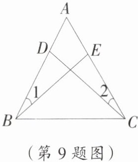 9. 易错题如图,在△ABC中,∠1= ∠2,BE= CD,AB= 5,AE= 2,则CE=