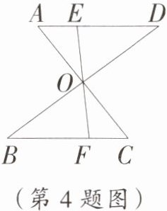 5. 练习变式教材P56,T2改编如图,$AB = CD$,$AD = BC$,$O为BD$中点,过点$O作直线与DA$,$BC的延长线交于E$,$F$,若$EO = 10$,则$FO$的长为