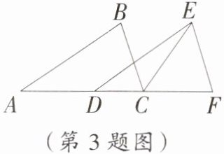 3. 练习变式教材P56,T1改编如图,$A$,$D$,$C$,$F$四点在同一直线上,分别以$AC$,$DF为边作△ABC$,$△DEF$,连接$CE$。已知$∠BCE = 52°$,$∠ECF + ∠F = 128°$,$AD = CF$,$BC = EF$。求证:$∠B = ∠DEF$。