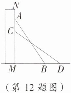 12. 在一次数学活动中,为了测量一堵墙上点 A 的高度 AM,嘉淇设计了如下方案(如图):
