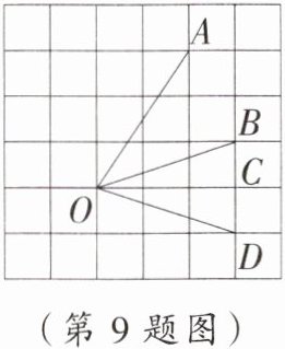 9. 如图,O,A,B,C,D 都为格点(方格纸中小正方形的顶点),∠AOC 的度数为 α,∠BOC 的度数为 β,则∠AOD 的度数可以表示为