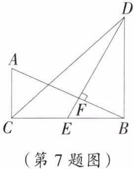 7. 如图,在△ABC 和△DBC 中,∠ACB = ∠DBC = 90°,E 是 BC 的中点,ED ⊥ AB 于点 F,且 AB = DE。