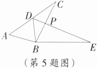 5. 如图,△ABC ≌ △DBE,点 D 在边 AC 上,BC 与 DE 交于点 P,已知∠ABE = 162°,∠DBC = 30°,AD = DC = 2.5,BC = 4。