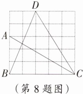 8. 几何直观 如图所示的网格是正方形网格,点 A,B,C,D 均落在格点上,则∠DCB + ∠ACB 的度数为