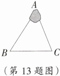 13. 中国农民丰收节是第一个在国家层面专门为农民设立的节日,节日时间为每年“秋分”。该节日的设立提升了亿万农民的荣誉感、幸福感、获得感。工作人员小张在丰收节展览会上不慎打碎一个如图所示的三角形玻璃展台(△ABC)。