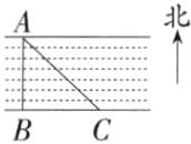 (3)如图,观察者在河南岸找到一点B,正好位于对岸树A的正南方向,从点B向东走到点C,此时恰好测得∠ACB=45°.由题意,得∠ABC=90°,