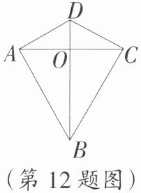 12. 两组邻边分别相等的四边形叫作“筝形”。如图,四边形 $ABCD$ 是一个筝形,其中 $AD = CD$,$AB = CB$,小明在探究筝形的性质时,得到如下结论:① $AC \perp BD$;② $AO = CO = \frac{1}{2}AC$;③ $\triangle ABD \cong \triangle CBD$;④若 $AC = 6$,$BD = 8$,则四边形 $ABCD$ 的面积等于 48,其中正确的结论有(