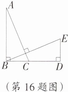 16. 如图,点 $B$,$C$,$D$ 在同一直线上,$AC = BE$,$AC \perp BE$,$\angle ABC = \angle D = 90^{\circ}$。