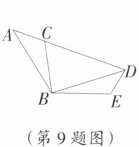 9. 如图,在四边形 $ABED$ 中,点 $C$ 在边 $AD$ 上,连接 $BC$,$BD$。已知 $\triangle ABC \cong \triangle DBE$,若 $DE = 3$,$AD = 10$。记 $S_1 = S_{\triangle BCD}$,$S_2 = S_{\triangle ABC} + S_{\triangle DBE}$,则 $S_1$ 和 $S_2$ 的大小关系是(