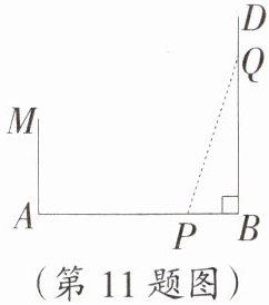 11. 分类讨论思想 如图,已知线段 $AB = 40$ m,$AM \perp AB$ 于点 $A$,$AM = 20$ m,射线 $BD \perp AB$ 于点 $B$,点 $P$ 从点 $B$ 出发沿 $BA$ 方向往点 $A$ 运动,每秒走 $1$ m,点 $Q$ 从点 $B$ 出发沿 $BD$ 方向运动,每秒走 $3$ m,点 $P$,$Q$ 同时从点 $B$ 出发,则出发 $x$ s 后,在射线 $AM$ 上有一点 $C$,使 $\triangle CAP$ 与 $\triangle PBQ$ 全等,则 $x$ 的值为(