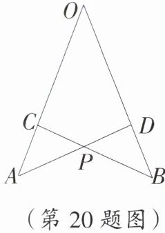 20. (7 分)如图,已知点 $C$,$D$ 分别在 $OA$,$OB$ 上,$AD$,$BC$ 相交于点 $P$,且 $OA = OB$,$OC = OD$。