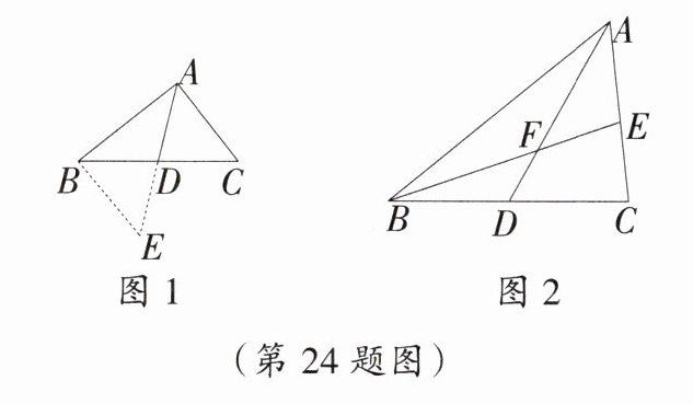 【问题解决】(3)如图 2,$AD$ 是 $\triangle ABC$ 的中线,$BE$ 交 $AC$ 于点 $E$,交 $AD$ 于点 $F$,且 $AE = EF$。求证:$AC = BF$。