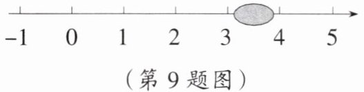 9. 把无理数$\sqrt[3]{8}$,$\sqrt{19}$,$\vert -\sqrt{6}\vert$,$\sqrt[3]{48}$表示在数轴上,在这四个数中,被墨迹(如图所示)覆盖住的无理数是 (
