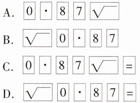 10. 易错题 利用计算器求$\sqrt{0.87}$的值,正确的按键顺序为(
