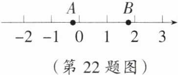 22. (7 分)如图,一只蚂蚁从点B沿数轴向左爬了 2 个单位长度到达点A,点B表示$\sqrt{3},$设点A所表示的数为m。