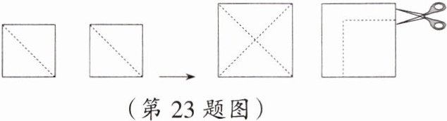 23. (7 分)实践与操作 如图,用两个面积为$50\mathrm{cm}^2$的小正方形纸片拼成一个大正方形。