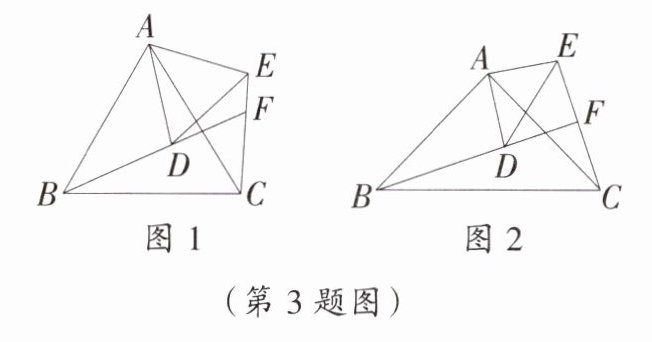 3. 中考新考法 综合与实践 (1)问题发现:如图1,△ABC和△ADE都是等边三角形(三角形的三边相等,三个角均为60°),连接CE,BD,延长BD交CE于点F,求证:BD= CE,∠BFC= 60°;