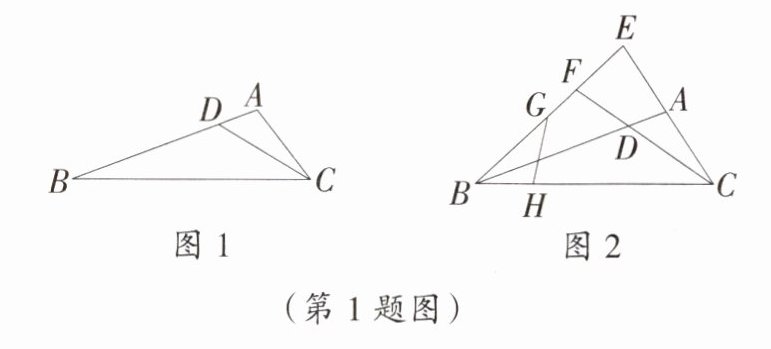 “如图2,延长CA至点E,使CE= BD,BE与CD的延长线相交于点F,点G,H分别在BF,BC上,BG= CD,∠BGH= ∠BCF.在图中找出与BH相等的线段,并证明.”