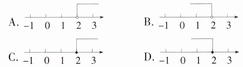 10. 使得式子$\sqrt{2 - x}$有意义的x的取值范围在数轴上表示正确的是(