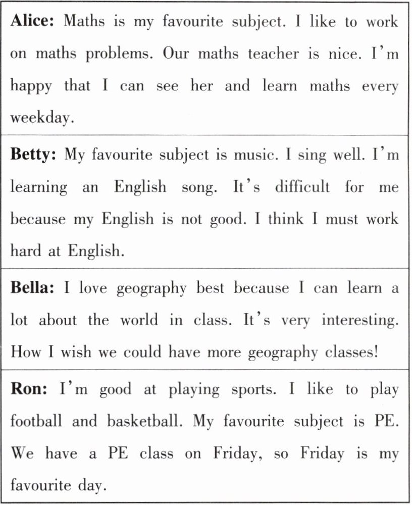 Alice and her classmates are talking about their favourite subjects on the school forum (论坛).