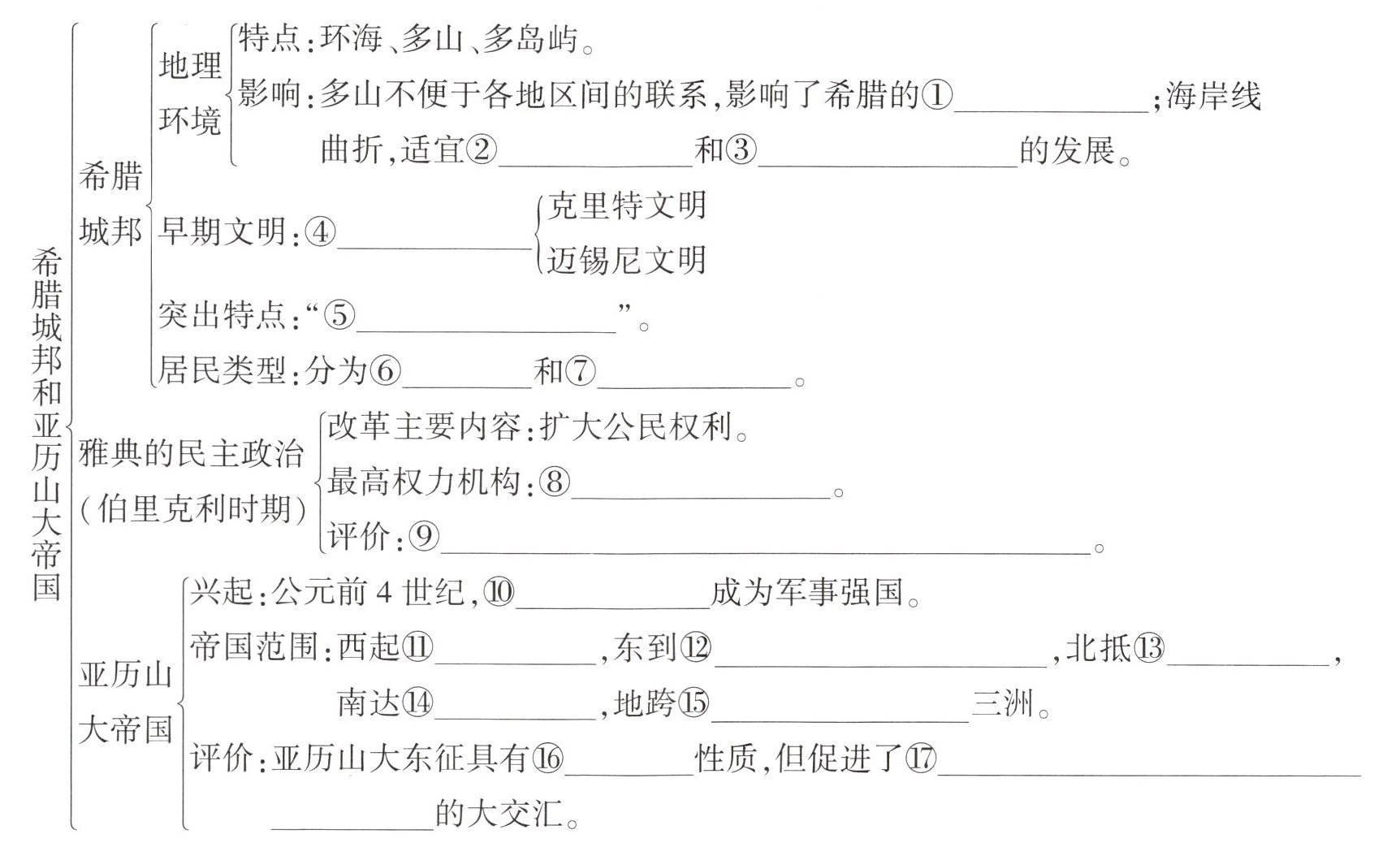 - 评价:亚历山大东征具有⑯________性质,但促进了⑰的大交汇。