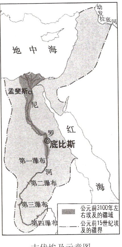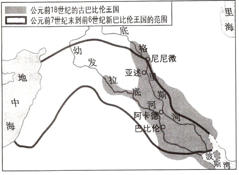 (1)《古代埃及示意图》:金字塔、象形文字;《古代两河流域示意图(约公元前 3500—前 539)》:《汉谟拉比法典》、楔形文字。