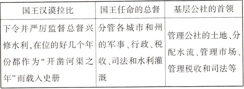4. 下表是古巴比伦王国汉谟拉比在位时统治者的行为和职责。据此可以推断古巴比伦【 】