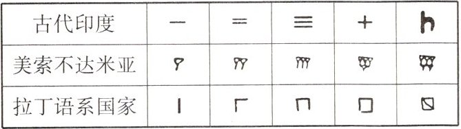 3.(河南中考)下表内容是古代多个国家或地区表示 1 至 5 的计数符号。这反映了【 】