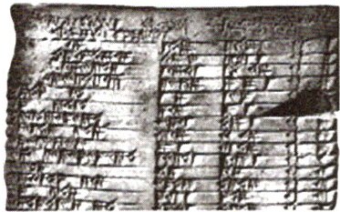 材料二:古巴比伦留下来的泥板记载着各种几何图形的计算方法。比如他们知道相似直角三角形的对应边是成比例的,等腰三角形顶点垂线平分底边。1945年,考古学家破解了美索不达米亚第322号泥板(见右图)。在这块4000多年前的泥板上,记录着许多勾股数。