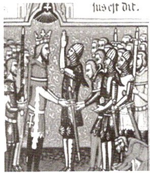 (1)根据材料一并结合所学知识回答,西欧中世纪封君与封臣之间形成严格等级关系的纽带是什么?(1分)