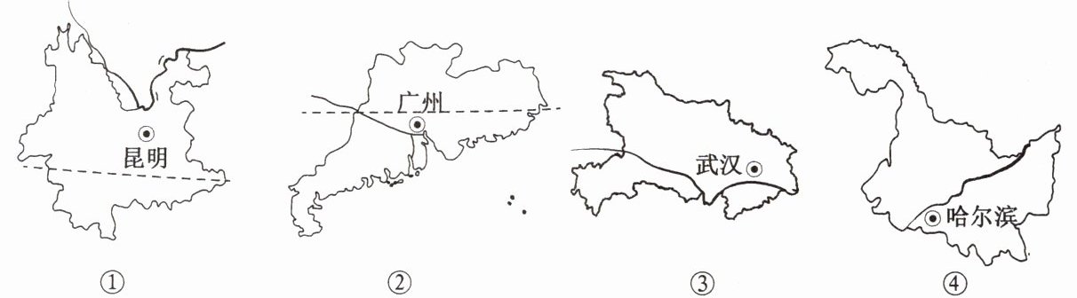 下图为我国四个省级行政区域轮廓图。读图,回答9~10题。
