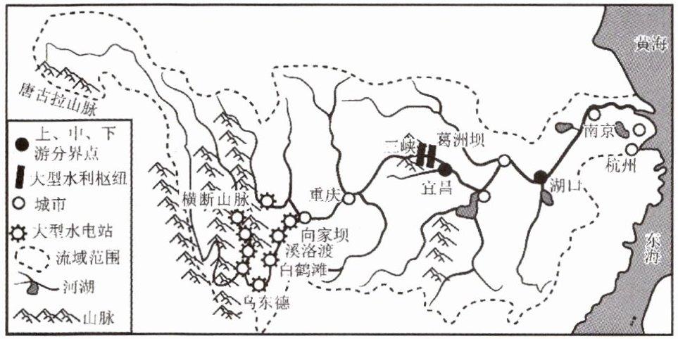 11. 金沙江是我国最大的水电基地,水能资源蕴藏量高,是我国“西电东送”工程的主要力量。读长江流域水系示意图,回答下列问题。