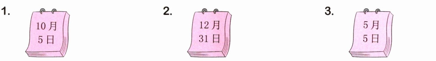 ) 5. A. It's on January 1st. B. It's on September 10th. C. It's on December 25th.