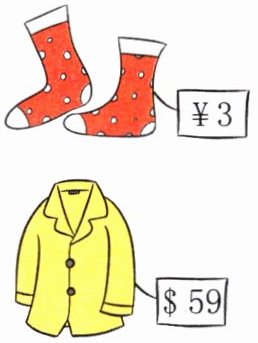 One possible version: Mike:How much are the socks? Tom:They're 3 yuan. Mike:Oh,that's cheap. How much is the coat? Tom:It's 59 dollars. Mike:It's expensive.