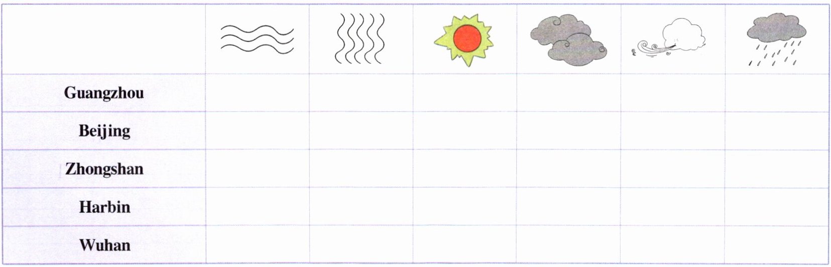 五、[新考法]Listen and tick. 听录音,在表格相应位置画“√”。