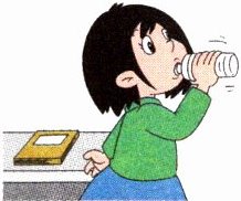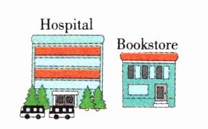 1. She has a cold. 2. It's across from the bank. 3. They are a hamburger and an ice cream. No, they're not healthy food. 4. She needs a lot of water. 5. He is taking some medicine. 6. It's next to the hospital.