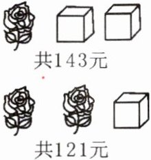 9. 如图,母亲节当天,很多同学给妈妈准备了鲜花和礼盒,从图中信息可知,买5束鲜花和5个礼盒的总价为