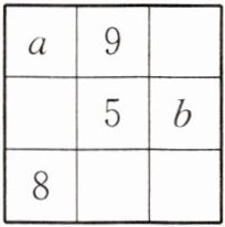 7. 把夏禹时代的“洛书”用数学符号翻译出来就是一个三阶幻方,它的每行、每列、每条对角线上三个数之和均相等,则幻方中的$a - b$的值是(