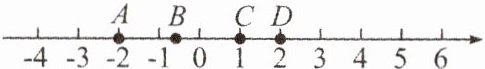 2. 如图,数轴上有$A$,$B$,$C$,$D$四个点,其中表示2的相反数的点是(