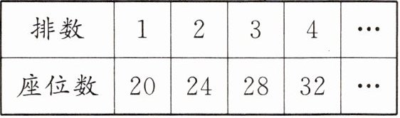 5. 某礼堂的横排座位按下列方式设置,请你根据下表算出第$ n $排有