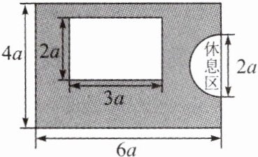 17. 如图是一个长方形游乐场,其宽是$4a$米,长是$6a$米。其中半圆形休息区和长方形游泳区以外的地方都是绿地。已知半圆形休息区的直径和长方形游泳区的宽都是$2a$米,游泳区的长是$3a$米。