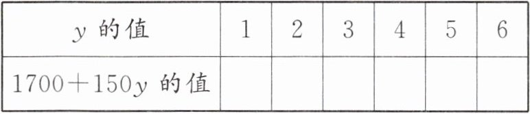 (2)本月该推销员想获工资$2450$元,求卖出商品多少万元,可设卖出商品$y$万元,列方程为$1700 + 150y = 2450$。先填表,再指出方程$1700 + 150y = 2450$的解。