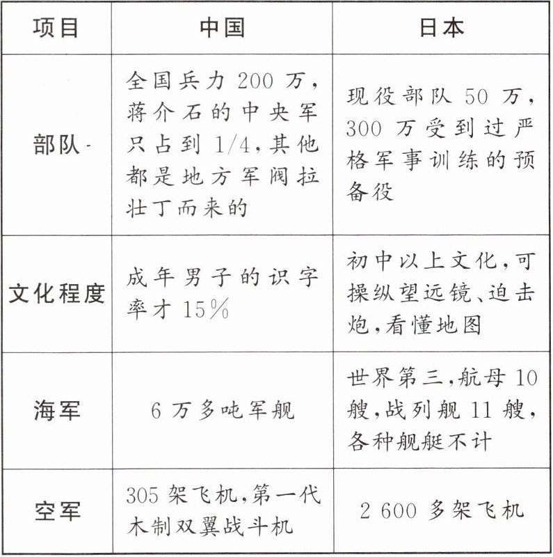 (3)原因:①军队文化水平不高,许多都是拉壮丁组成的。②部队装备落后,抵御不了日军的先进装备。