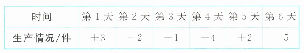 例 5 某工厂计划 $ 6 $ 天内每天生产 $ 20 $ 件产品,由于另有任务,每天上班人数不一定相等, $ 6 $ 天内实际每天的产量情况如下表(超出计划为正,不足为负).
