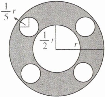 解(1)阴影部分的面积为 $ \pi r^2 - \pi×(\frac{1}{2}r)^2 - \pi×(\frac{1}{5}r)^2×4 $.
