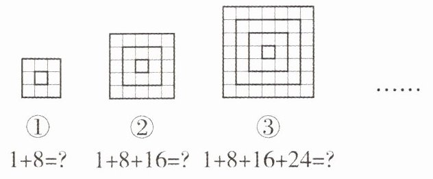 3. 观察下列图形及所对应的算式,根据你发现的规律计算 $ 1 + 8 + 16 + 24 + … + 8n $($ n $ 是正整数)的结果为 (