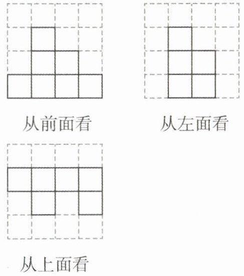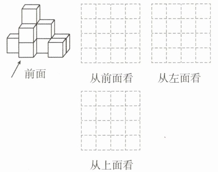 例 3 由 10 个大小相同的正方体搭成的立体图形如图所示,请在网格中画出从前面看、从左面看、从上面看得到的平面图形.
