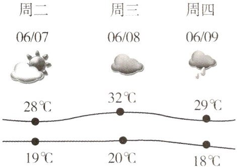 目前,人们可以通过多种途径获取天气信息。读某市6月7—9日的天气信息图,完成1~2题。