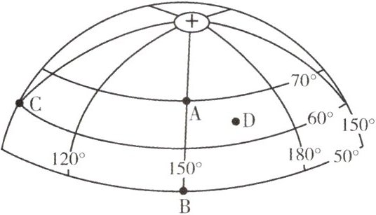 半球,D点位于西