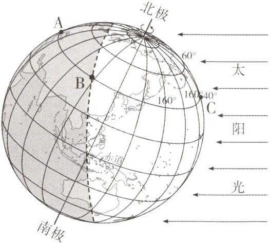 (填“白昼”或“黑夜”);在从B点运动到C点的过程中,处于白昼